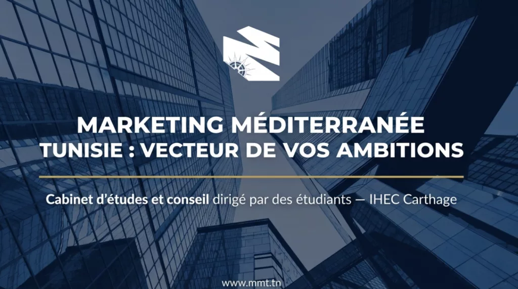 Marketing Méditerranée Tunisie est la Junior Entreprise de l’IHEC Carthage. Forte de 21 ans d’expérience, elle accompagne les entreprises publiques et privées dans la compréhension de leur marché et la définition de stratégies adaptées pour atteindre leurs objectifs.